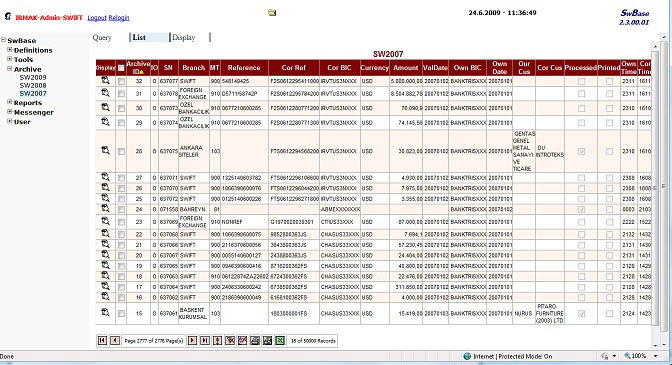 SwBase Archive is a web-based SWIFT Message archiving solution. Messages are stored in standards-independent format in a database indexed for fast retrieval.