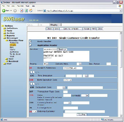 SwBase Messenger provides your institution an easy way to create, verify, authorize and route all SWIFT messages. The product supports a web-base interface, full SWIFT standards validation of messages, and sophisticated rights management.